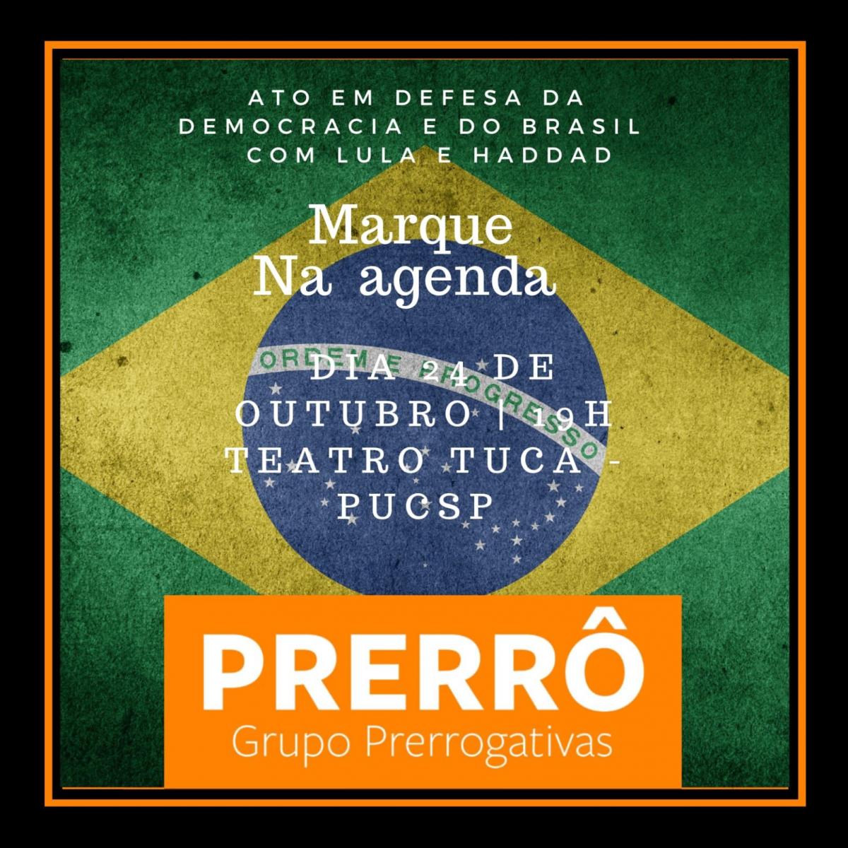 No dia 24/10, às 19h, o Movimento participou, com outros movimentos e entidades, de ato no Tuca em favor da democracia, do Brasil e das candidaturas de Lula e Haddad. Foi possível acompanhar o evento por telões instalados em frente ao teatro. Clique aqui para assitir a transmissão da TV PUC.
