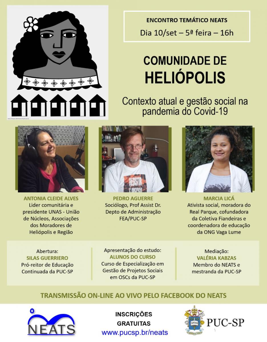 Dia 10/9, às 16h, o Núcleo de Estudos Avançados do Terceiro Setor (Neats, Pós em Administração) apresenta e debate estudo que analisou novas iniciativas de gestão social que surgiram da articulação entre organizações locais da sociedade civil e seus parceiros para enfrentar os efeitos da COVID-19 sobre as periferias.