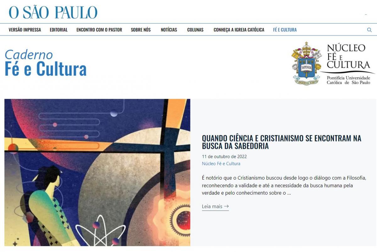 Já está disponível uma nova edição do caderno Fé e Cultura do jornal "O São Paulo", com o tema "Caderno Fé e Cultura: quando ciência e Cristianismo se encontram"