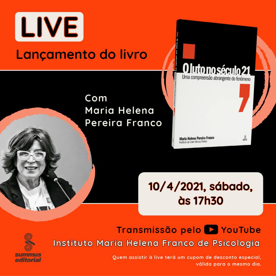Dia 10/4, às 17h30, a profa. Maria Helena Pereira Franco (Pós em Psicologia Clínica) participa de live para lançamento de seu mais recente livro: O luto no século 21: uma compreensão abrangente do fenômeno (ed. Summus).
