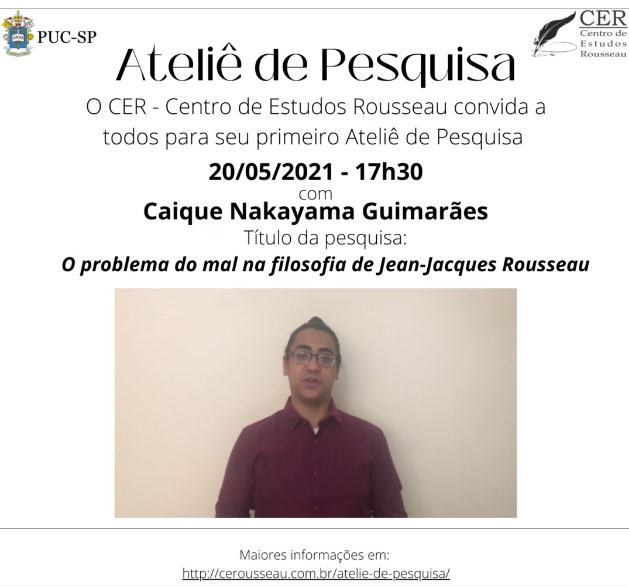 O Centro de Estudo Rousseau do Brasil (CER) realiza, dia 20/5, às 17h30, seu primeiro Ateliê de Pesquisa.