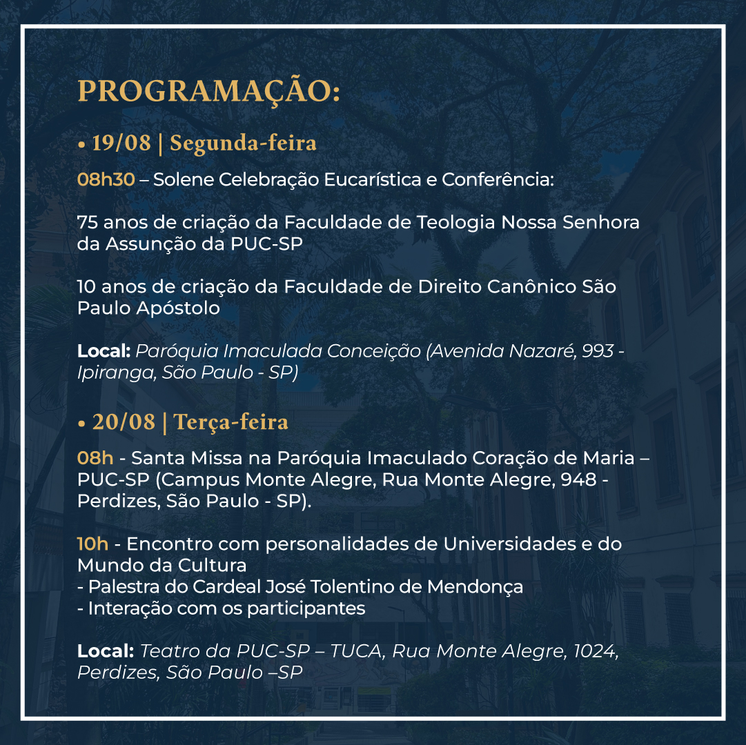 A atividade acontece na semana em que a PUC-SP comemora 78 anos desde a sua fundação, em 22 de agosto de 1946.