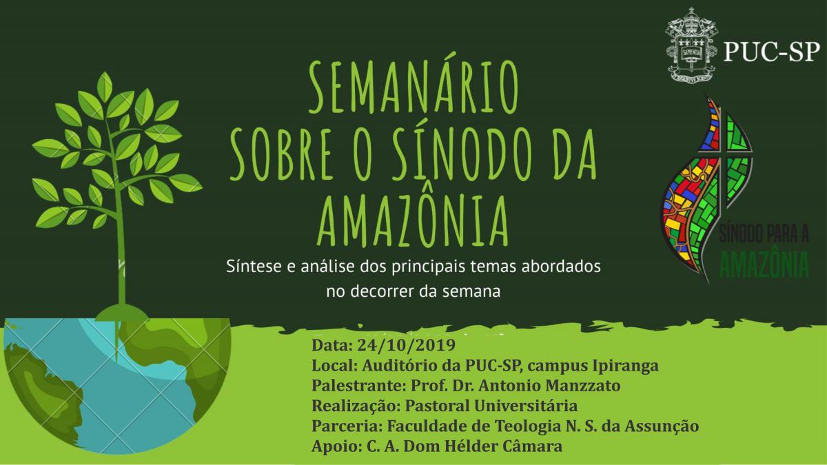 Dia 24/10, às 11h, o prof. Antonio Manzzato participa do Semanário sobre o Sínodo da Amazônia: síntese e análise dos principais temas abordados no decorrer da semana. O evento acontece no campus Ipiranga.