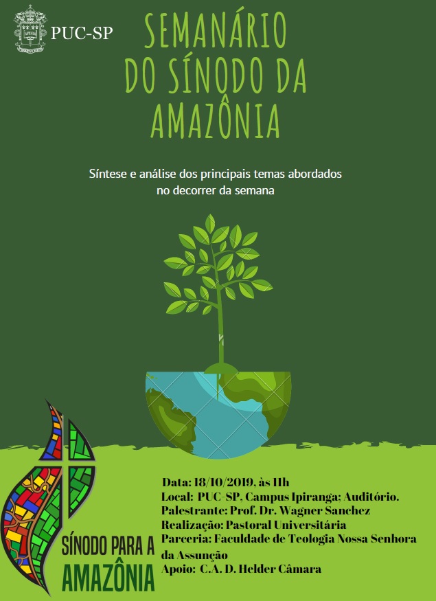 Dia 18/10, às 11h, o prof. Wagner Sanchez realiza participa do Semanário sobre o Sínodo da Amazônia: síntese e análise dos principais temas abordados no decorrer da semana. O evento acontece no campus Ipiranga.