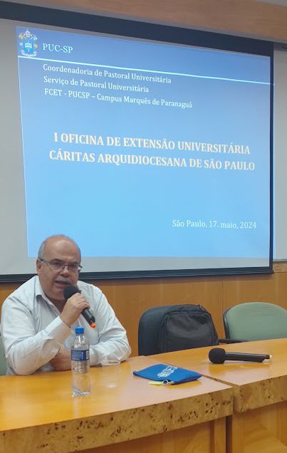 Na 1ª Oficina de Extensão Universitária, realizada no dia 17/5, a Cáritas Arquidiocesana, associação civil independente de direito privado que opera com autonomia administrativa, patrimonial e financeira, sem fins lucrativos, de amplitude nacional e internacional, ligada à Igreja Católica, foi convidada na pessoa do coordenador o Diácono Márcio, para apresentar sua missão e campos de atuação. O evento foi coordenado por dra. Walkíria Ferreira Guedes, assessora de Pastoral Universitária, no campus Marquês de Paranaguá e o prof. dr. Mário Farah, do Curso de Ciências da Computação e da Engenharia. A participação de professores e alunos foi valiosa para o êxito do evento.