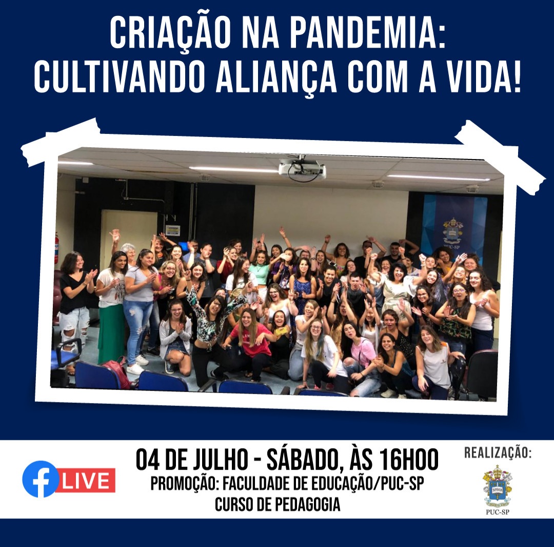 O curso de Pedagogia realiza dia 4/7, a partir das 16h, uma live para celebrar o final do semestre, com o tema Criação na pandemia: cultivando aliança com a vida.