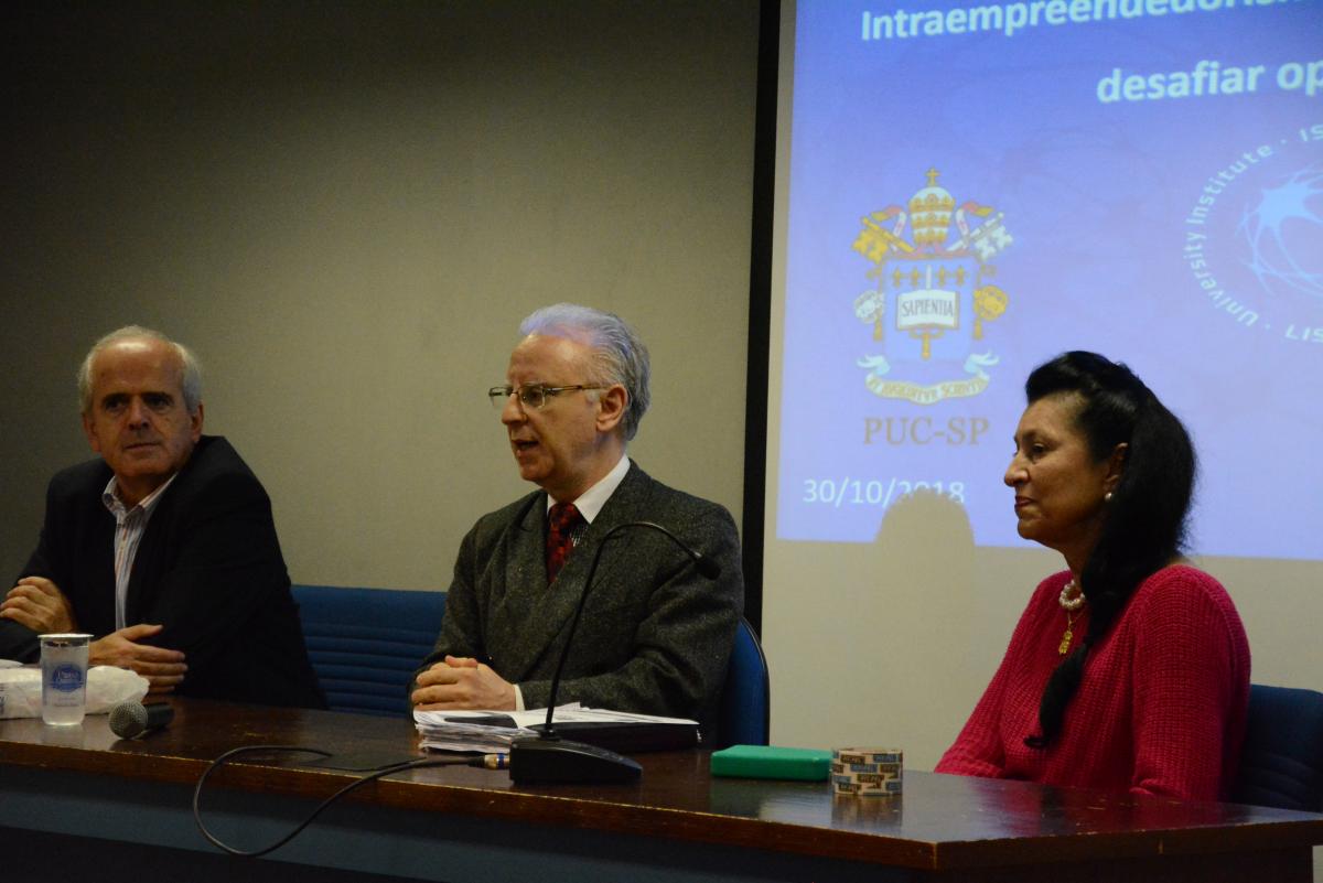 Os Programas de Estudos Pós-Graduados em Administração e Contabilidade e Atuariais recebeu nesta semana o Prof. Dr. Jose Gonçalves das Neves, associado com agregação na ISCTE-IUL (Instituto Universitário de Lisboa). O docente português ministrou dois eventos na PUC-SP. No dia 30/10, Intraempreendedorismo: Atitude e Processo para Identificar Oportunidades. Em 31/10 ele ministrou o workshop Liderança, Cultura Organizacional e Qualidade Total.
