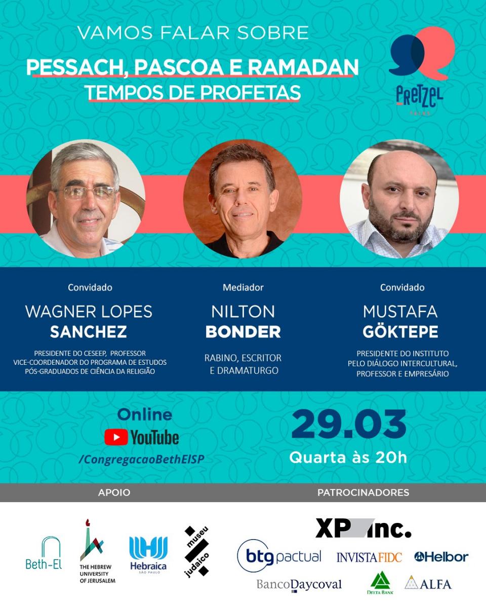 O prof. Wagner Lopes Sanchez (Ciência da Religião) participa do evento Pessach, Páscoa e Ramadan: tempos de profetas, dia 29/3, pelo youtube.