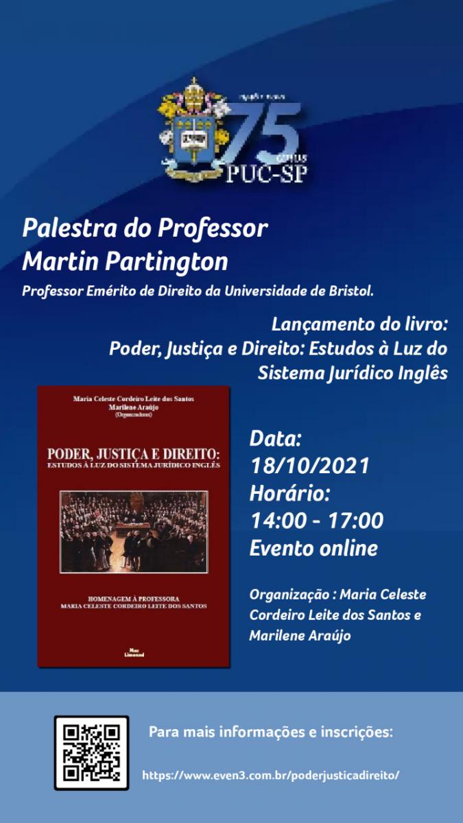 Dia 18/10, às 14h, se realiza o evento Poder, Justiça e Direito à Luz do Sistema Jurídico Inglês, com o prof. Martin Partington. Clique aqui para saber mais.