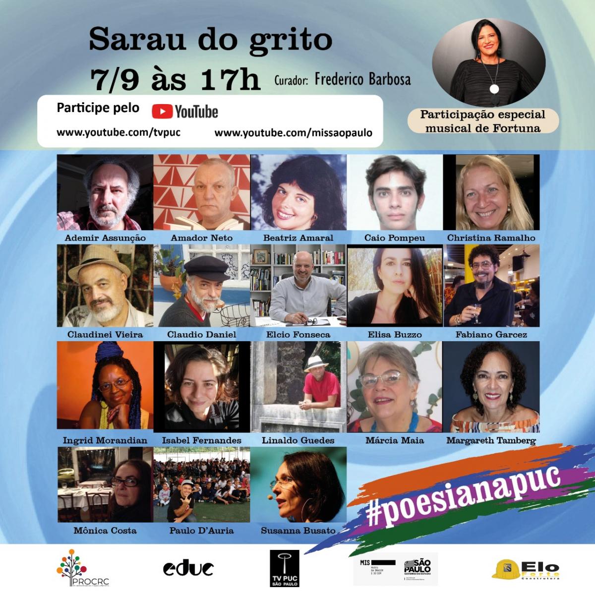 Uma outra parceria da TV PUC-SP com o Museu da Imagem e do Som (MIS) permitirá que o #poesianapuc promova saraus virtuais, com os participantes apresentando seus poemas à distância. O primeiro deles, no dia 7 de setembro, será o Sarau do Grito, com a curadoria de Frederico Barbosa e participação de 18 poetas (9 mulheres e 9 homens), além da cantora e compositora Fortuna. Outros saraus serão promovidos ao longo do semestre, reunindo poetas que integram a comunidade puquiana.