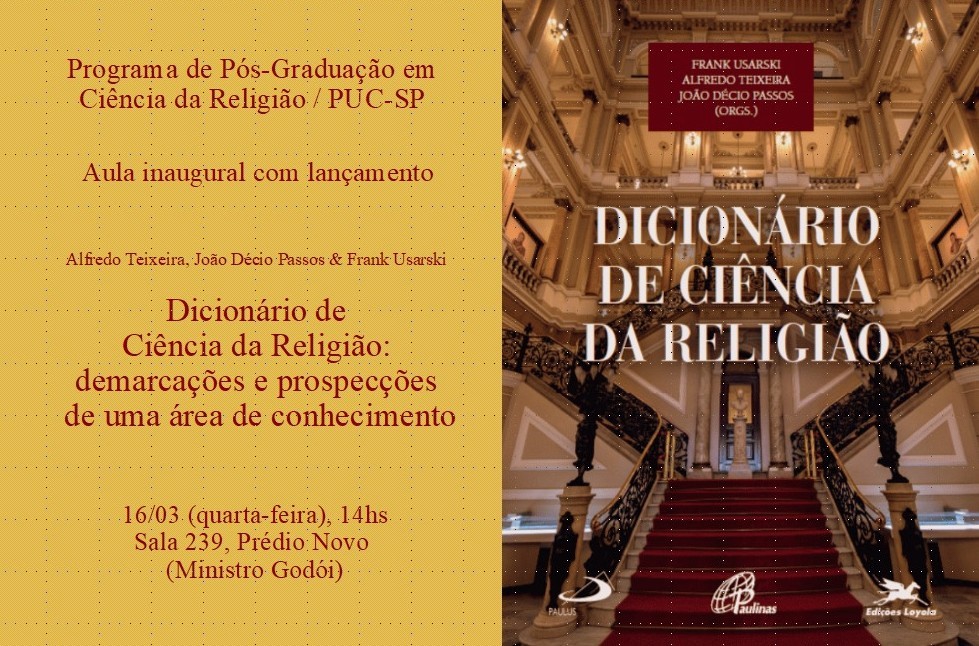 Na ocasião, também haverá lançamento do livro Dicionário de Ciência da Religião: demarcações e prospecções de uma área de conhecimento.