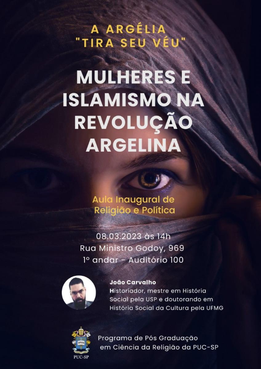 Com o tema Argélia tira seu véu: mulheres muçulmanas e a Revolução Argelina, a ser abordado por João Carvalho (UFMG), a atividade acontece no auditório 100 (1º andar, prédio novo).