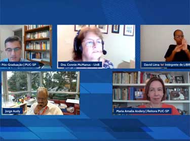 Participaram a reitora Maria Amalia Andery, o prof. Jorge Luis Nicolas Audy (PUC-RS) e a profa. Concepta Margaret McManus Pimentel (Connie McManus) (UnB). O pró-reitor de Pós-Graduação, prof. Márcio Alves da Fonseca, foi o mediador.