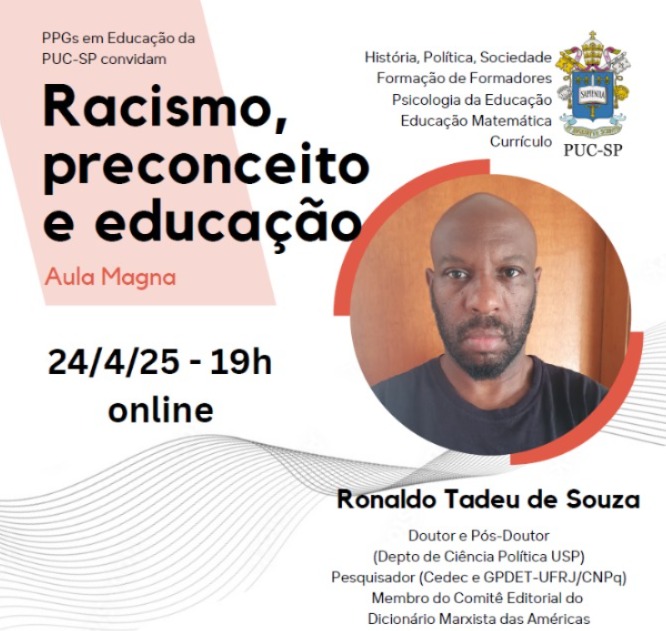 O Programa de Pós-Graduação em Educação promove a Aula Magna Racismo, preconceito e educação.