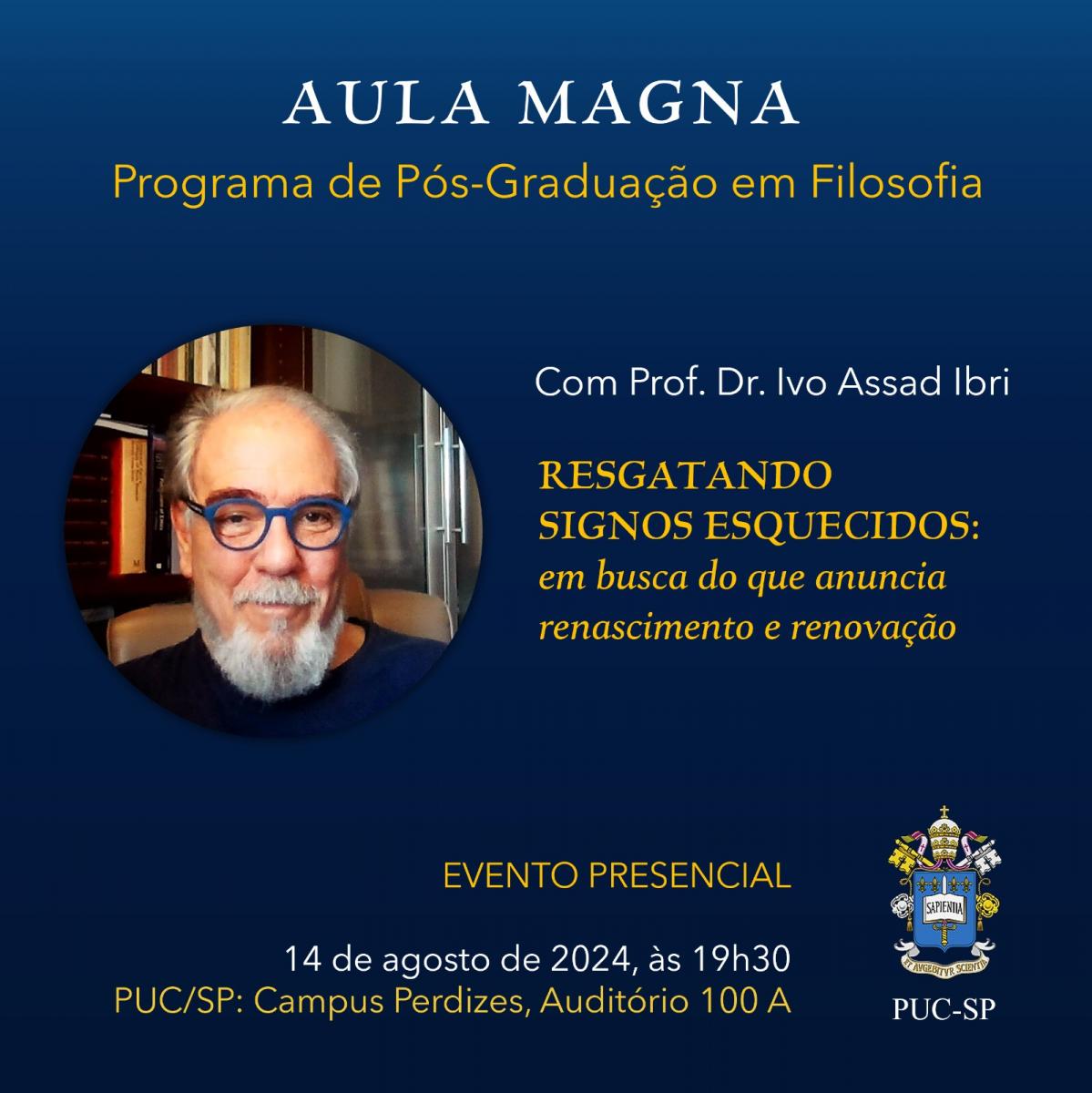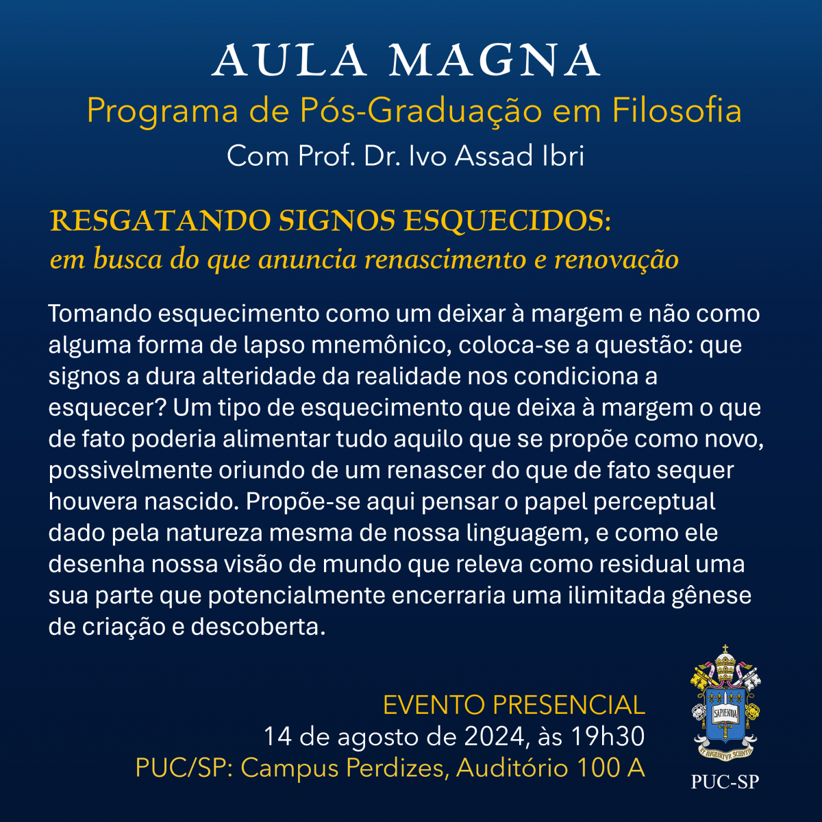 O Programa de Pós-Graduação em Filosofia promove a Aula Magna Resgatando signos esquecidos: em busca do que anuncia renascimento e renovação, com o prof. Ivo Assad Ibri.