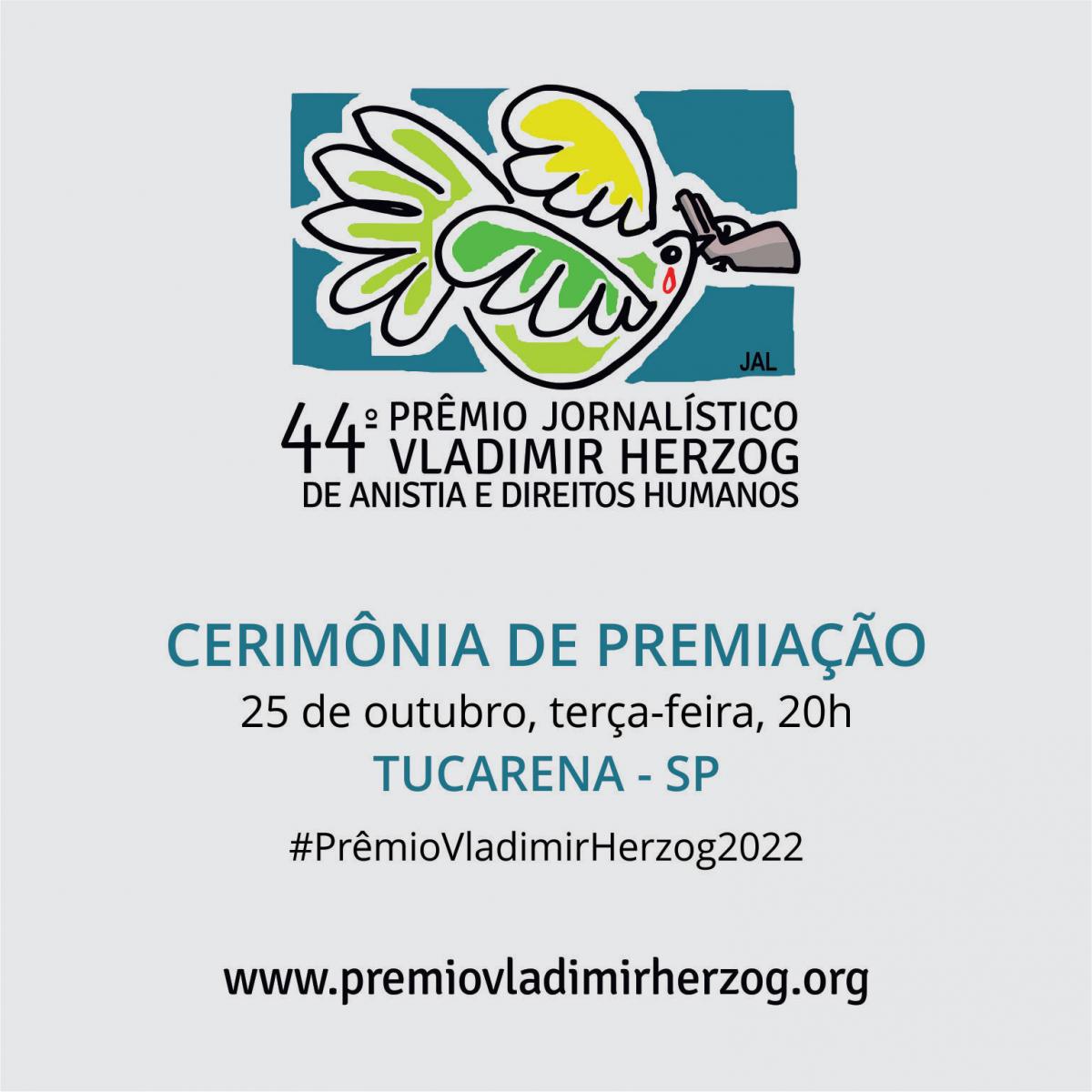Dia 25/10, às 20h, o Tucarena recebe a cerimônia de premiação da 44ª edição do Prêmio Jornalístico Vladimir Herzog de Anistia e Direitos Humanos. Na tarde do mesmo dia, haverá uma roda de conversa com os jornalistas vencedores.