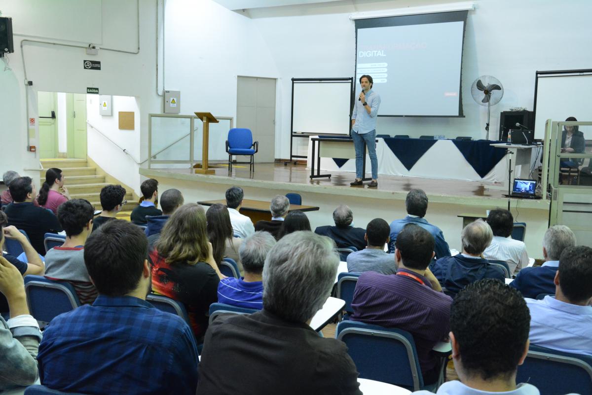 Formado em Administração pela PUC-SP, o presidente da Oracle no Brasil, Rodrigo Galvão, fez a palestra de abertura do Encontro de Ciências Exatas e Tecnologia, no dia 15/10. O evento aconteceu no campus Consolação.