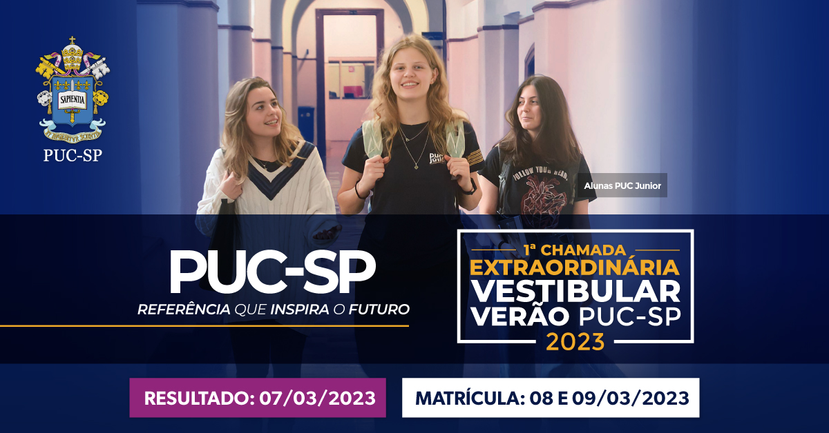 Já está disponível a lista dos aprovados na primeira chamada extraordinária do Vestibular de Verão 2023. Acesse: https://matricula.pucsp.br/.