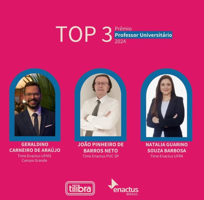 O prof. Joao Pinheiro de Barros Neto (Administração), da Faculdade de Economia da PUC-SP, foi classificado no top 3 do Prêmio Professor Universitário de 2024, promovido pela Tilibra e pelo Time Enactus.