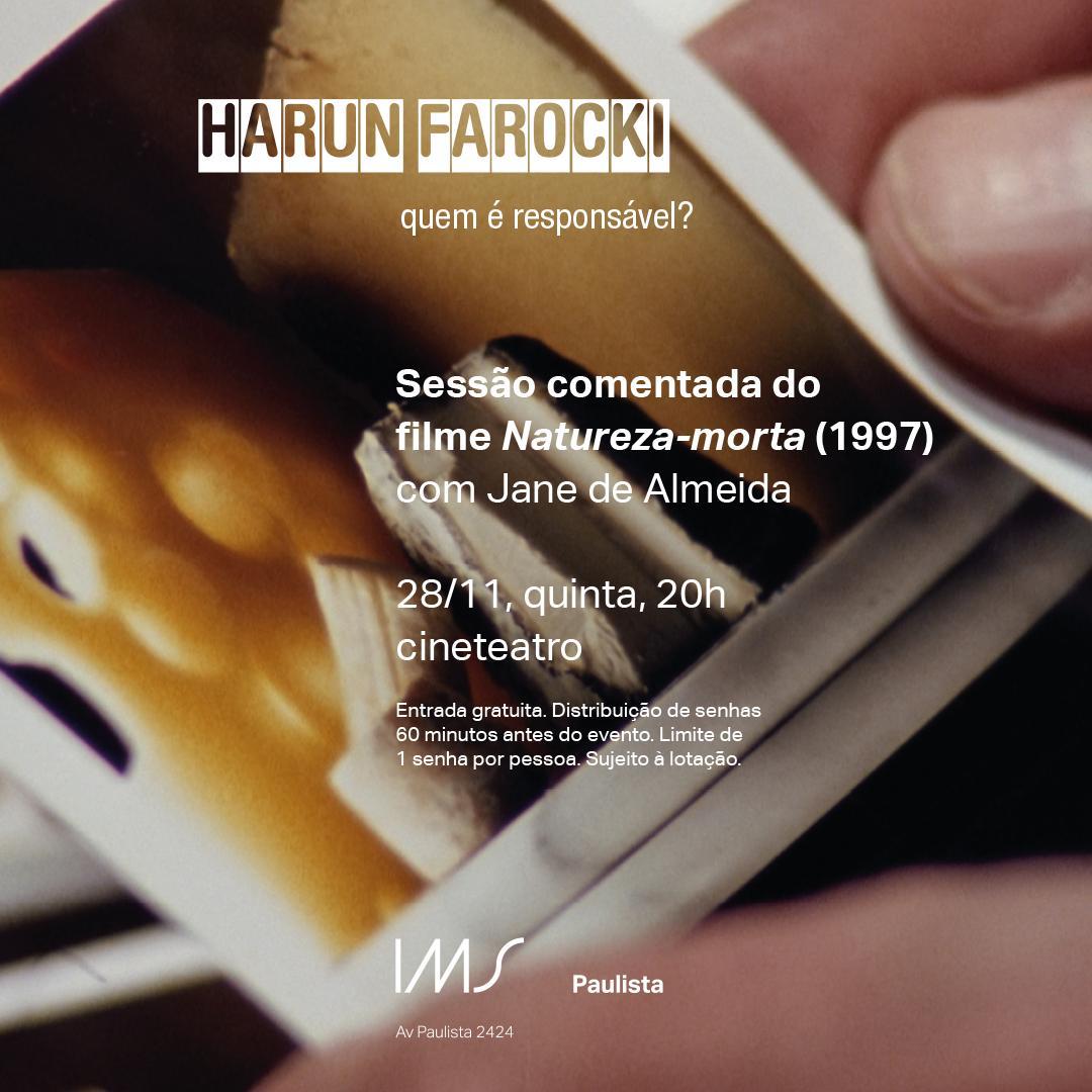 A profa. Jane de Almeida (Comunicação e Multimeios) participa de sessão comentada do filme Natureza-Morta, de Harun Farocki. O evento acontece dia 28/11, às 20h, no Cineteatro do IMS Paulista.
