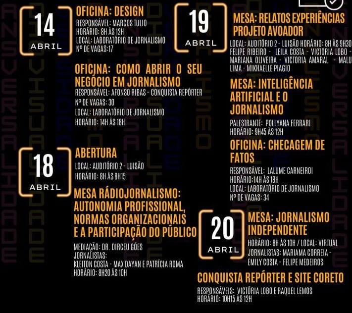 Confira a programação abaixo.