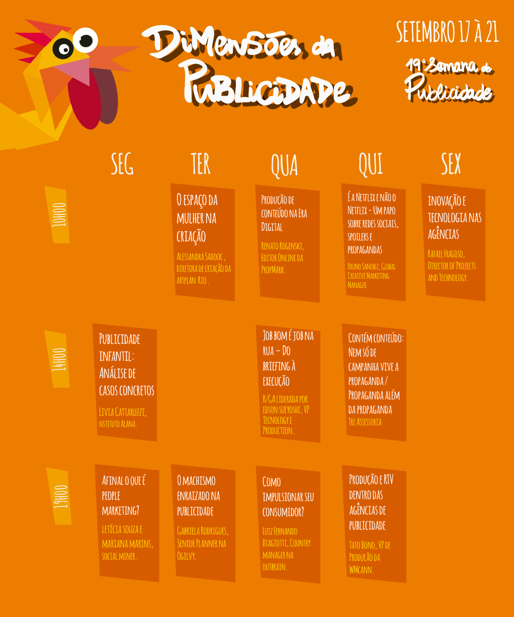 A 19ª Semana de Publicidade e Propaganda será realizada de 17 a 21/9, no campus Monte Alegre. O tema deste ano é Dimensões da Publicidade. O objetivo é debater como as novas tecnologias tem deixado a área de publicidade cada vez mais eclética e diversificada, além de trazer oportunidades e campos de trabalho nunca vistos antes.