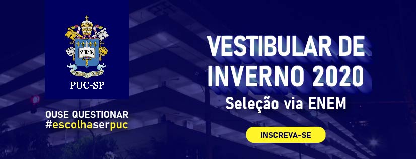 Estão abertas, de 12/5 a 24/6, as inscrições para o processo seletivo de inverno da PUC-SP 2020, que será realizado via Enem, com nota de 2016, 2017, 2018 ou 2019.
