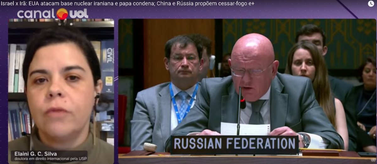 A profa. Elaini Silva (Relações Internacionais) participou do programa "UOL News" (a partir dos 10s), cujo tema foi Conselho de Segurança se Reúne após ataque do EUA ao Irã, transmitido pelo portal de notícias do UOL. Segundo a docente, faz parte da estrutura do direito internacional a inesistência, em razão da soberania dos estados, de um juíz ou árbitro automático para conflitos entre nações.