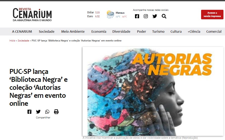 O lançamento da a Biblioteca Negra e a coleção Autorias Negras da PUC-SP foi destaque no site da Revista Cenarium.