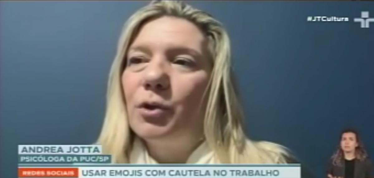 A professora Andrea Jotta (Psicologia) participou da reportagem Emojis simplificam a comunicação, divulgada pelo telejornal da TV Cultura Nacional. Segundo a docente, não é muito difícil entender um emoji de frio ou de raiva, por exemplo. A interpretação da linguiagem , mesmo do ponto de vista cerebral ou neurótico, é muito mais rápida, assim sendo, acaba sucitando no outro uma proximidade maior.
