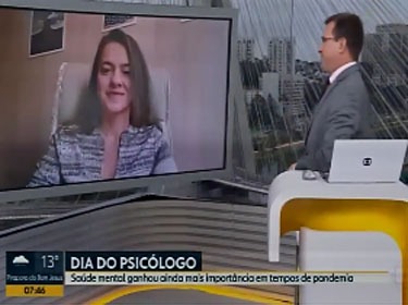 O jornal Bom Dia SP entrevistou a profa. Elisa Zaneratto Rosa (Psicologia), para abordar os desafios e as oportunidades trazidos pela pandemia aos profissionais da área, já que em 27 de agosto se comemora do Dia do Psicólogo.