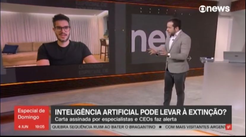 O prof. Diogo Cortiz (TIDD) participou da reportagem Inteligência Artificial pode levar à extinção?, divulgada pela Globo News.