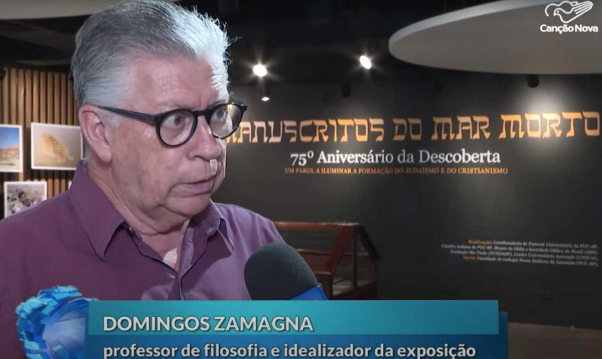 O prof. Domingos Zamagna participou de reportagem da TV canção Nova, sobre a exposição 75º Aniversário da Descoberta Manuscritos do Mar Morto, em cartaz na biblioteca do campus Monte Alegre.