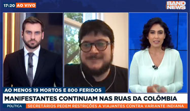 O prof. Tomaz Paoliello (RI) falou à rede BandNews sobre a situação dos protestos na Colômbia. A entrevista abordou o fato da ONU condenar uso excessivo de força policial naquele país.