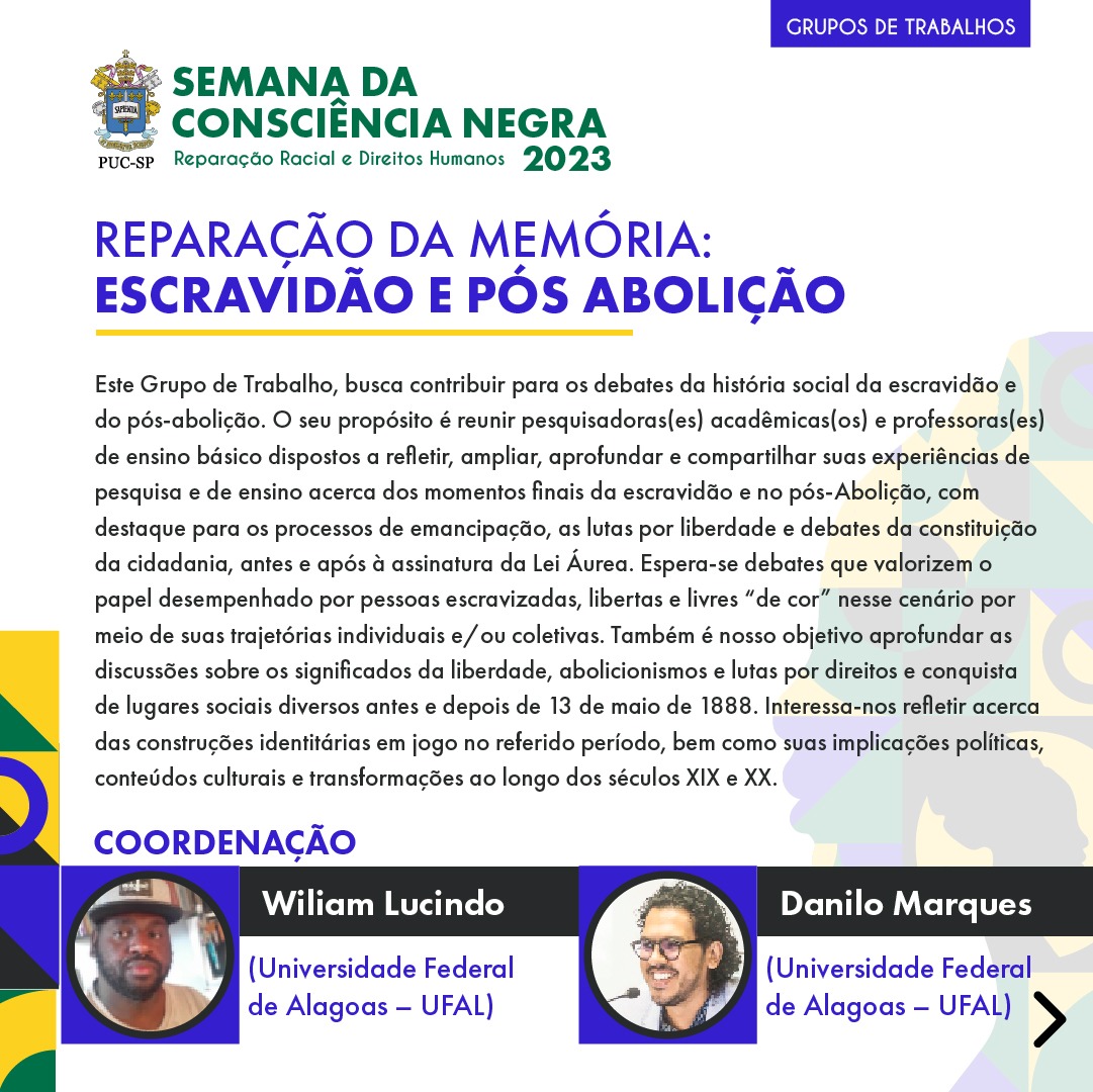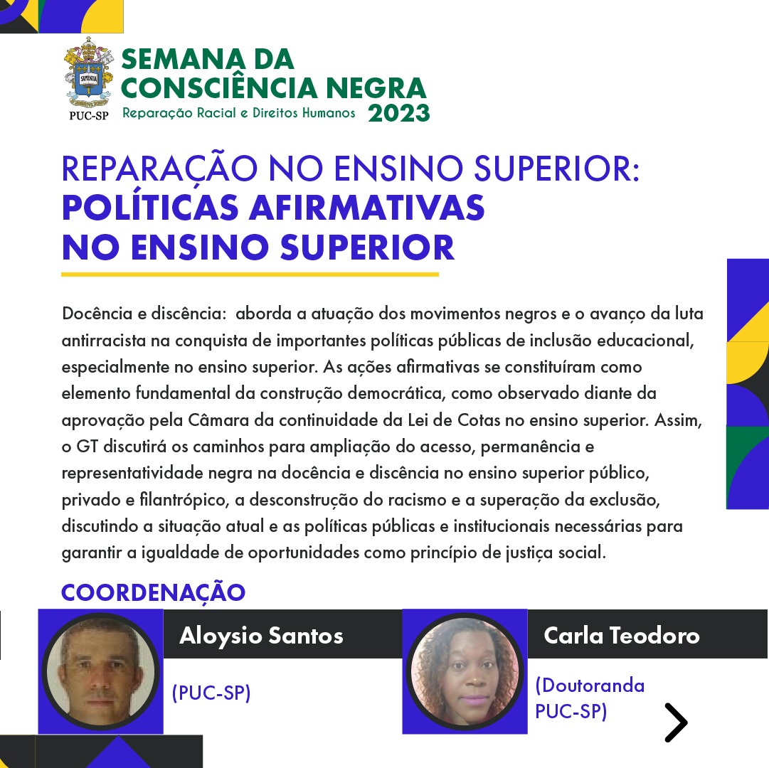 O evento visa contribuir para o avanço do debate em torno da reparação racial e dos direitos humanos na Universidade. Segundo os organizadores, a atividade tem como objetivo convocar seus participantes a pensar nos desafios de ajustes de contas com o passado e com políticas afirmativas de igualdade racial, levando em conta o papel de Estado e da sociedade na construção de agendas que provoquem no debate público a superação do racismo, das discriminações e das desigualdades.