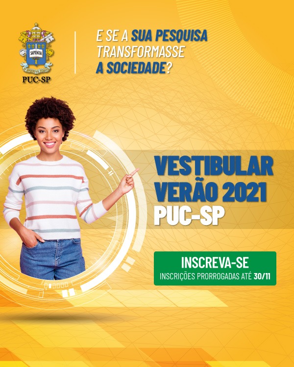 Ao todo, a Universidade oferece vagas em 38 graduações. A taxa de inscrição do Vestibular de Verão 2021 da PUC-SP é de 140 reais. Todas as informações estarão disponíveis no site www.pucsp.br.