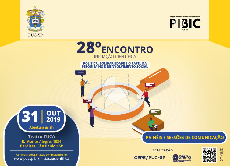 O 28º Encontro de Iniciação Científica da PUC-SP será realizado dia 31/10, a partir das 9h, no Tuca. Neste ano, o tema do evento é Política, Solidariedade e o Papel da Pesquisa no Desenvolvimento Social.