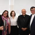 Participaram da mesa o Cardeal Odilo Pedro Scherer, Arcebispo Metropolitano de São Paulo e Grão-Chanceler da PUC-SP, a reitora Maria Amalia Andery, o diretor da Faculdade de Teologia, Pe. Boris Agustín Nef Ulloa, e o Pe. Everton Fernandes Moraes, diretor da Faculdade de Direito Canônico São Paulo Apóstolo, que durante o evento entregou a medalha São Paulo Apóstolo ao Cardeal José Tolentino.