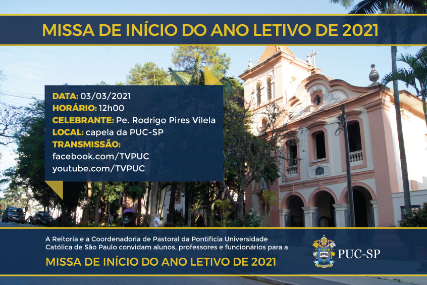 A PUC-SP celebra, dia 3/3, a missa de início do ano letivo de 2021. Veja na imagem todas as informações: