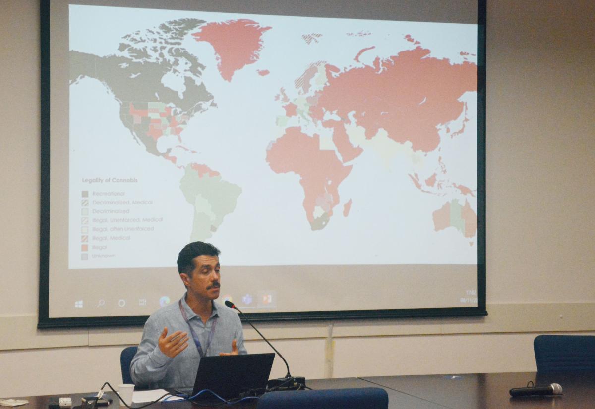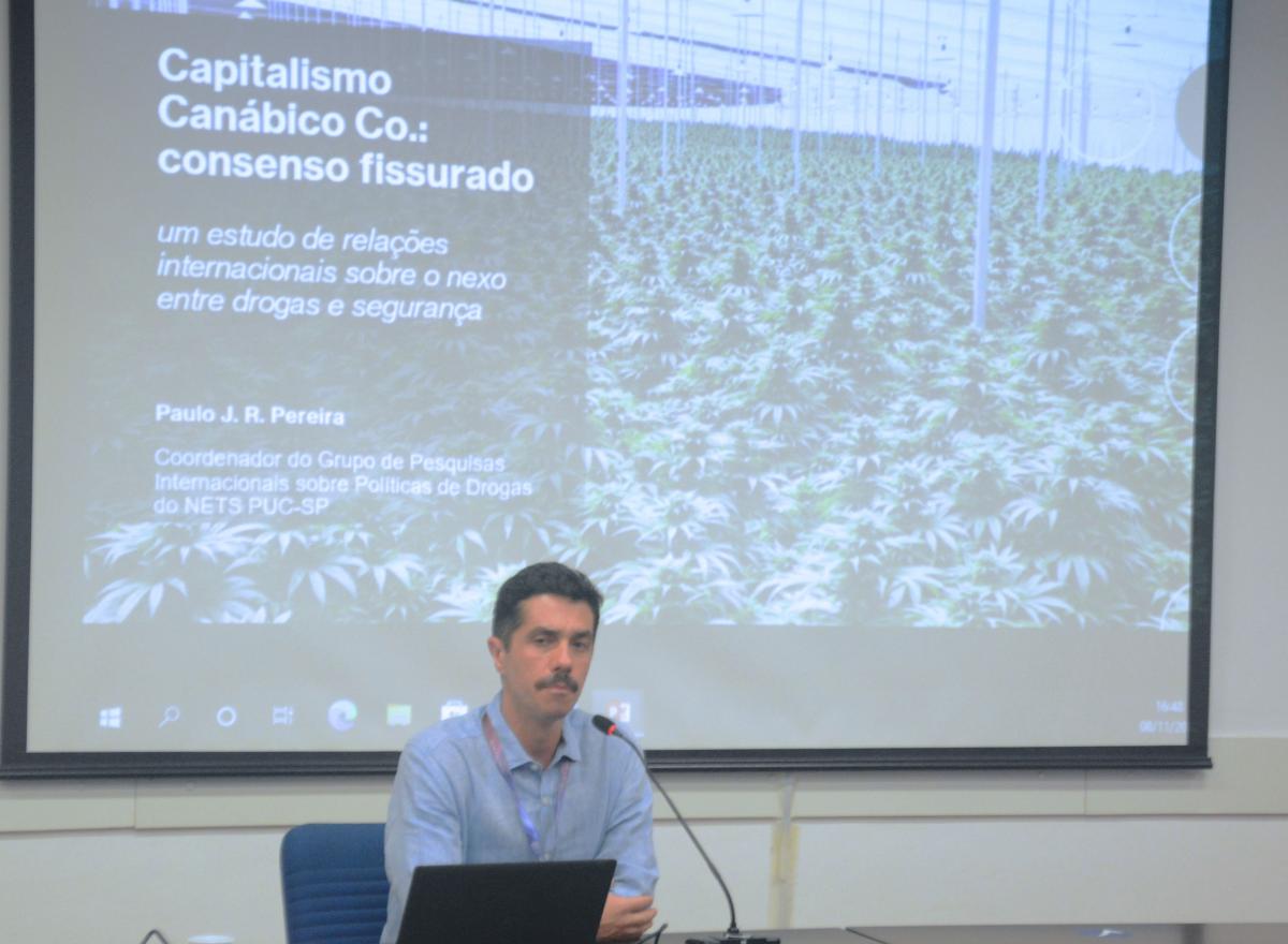 A pesquisa apresentada dessa vez foi "Cannabis global Co.: consenso fissurado - Um estudo de relações internacionais sobre o nexo entre drogas e capitalismo", do prof. Paulo José dos Reis Pereira.