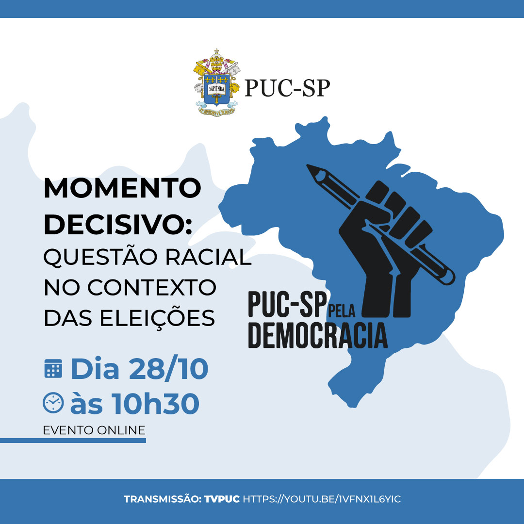 Amanhã (28/10), às 10h30, o Movimento PUC-SP pela Democracia promove a última live, dessa vez com o tema "Momento decisivo: Questão Racial no Contexto das Eleições".