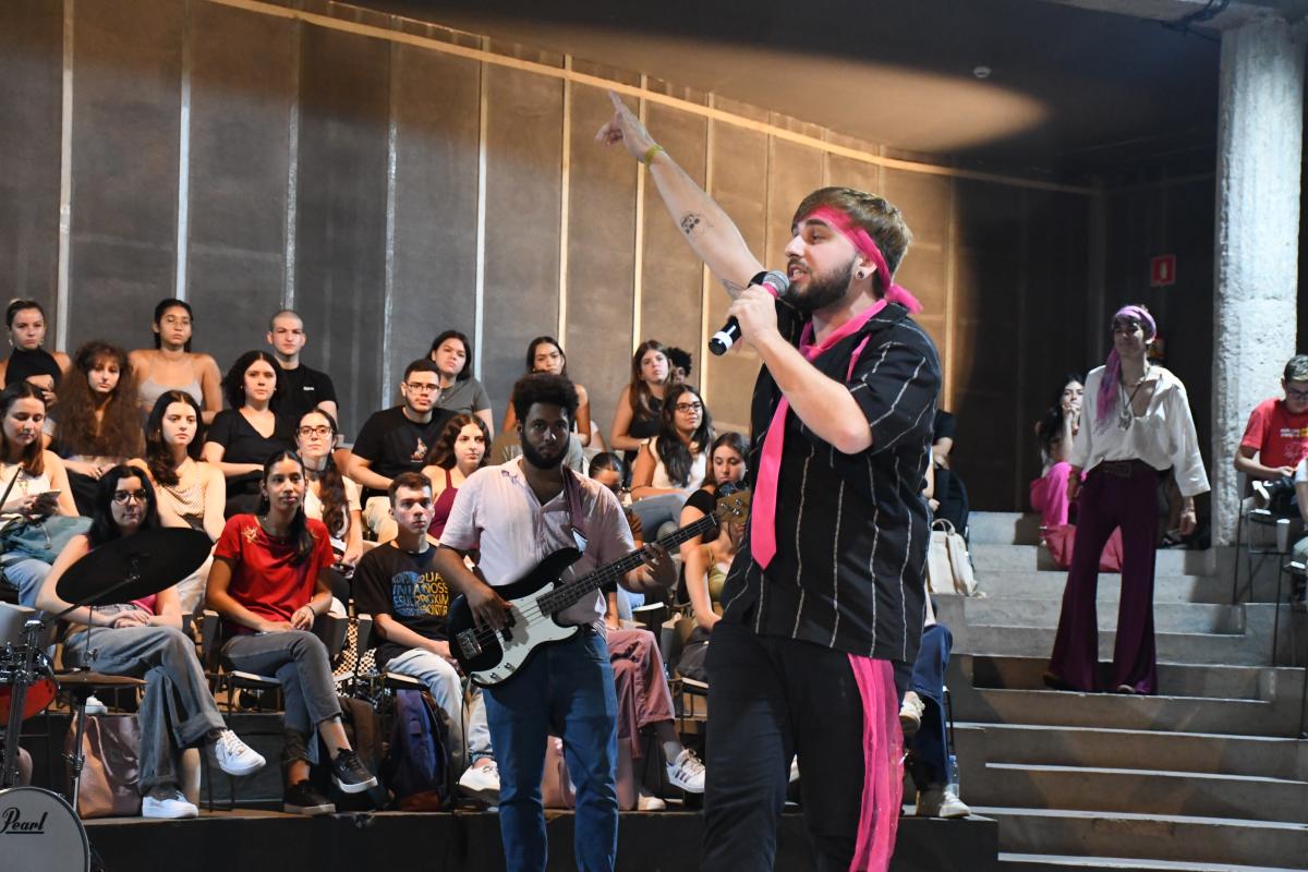 Organizado pela Pró-Reitoria de Cultura e Relações Comunitárias (Pro-CRC), o evento teve como objetivo relembrar as resistências exercidas e destacar as ações realizadas pela Universidade, especialmente a partir do golpe militar que marcou a vida da nação, em 1964, há 60 anos. A atividade também contou com a apresentação musical da banda Televisão de Cachorro e Gustavo Cintra. O grupo é formado por alunos do curso de Comunicação e Multimeios.