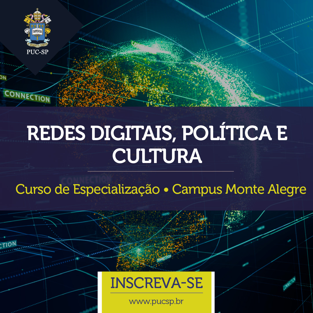 Estão abertas as inscrições para o curso de especialização em Redes digitais, Política e Cultura da PUC-SP. O foco é debater sobre as constantes transformações geradas pela digitalização em suas diferentes perspectivas, buscando articular as dimensões política, antropológica, sociológica, das artes e da psicologia.