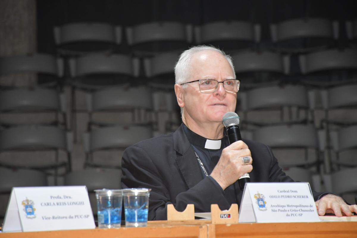 Na última segunda-feira, 3 de novembro, o Teatro Tucarena sediou o encontro “Laudato Si’: a Casa Comum e os Desafios das Novas Realidades”, que reuniu o Cardeal Dom Odilo Pedro Scherer, arcebispo de São Paulo, e docentes especialistas para discutir os dez anos da Encíclica Laudato Si’, publicada pelo Papa Francisco em 2015. O evento foi promovido pelo Núcleo de Fé e Cultura da PUC-SP, sob coordenação do prof. Pe. Rodrigo Vilela, e contou com a presença de estudantes, professores e representantes de diversos setores da sociedade.