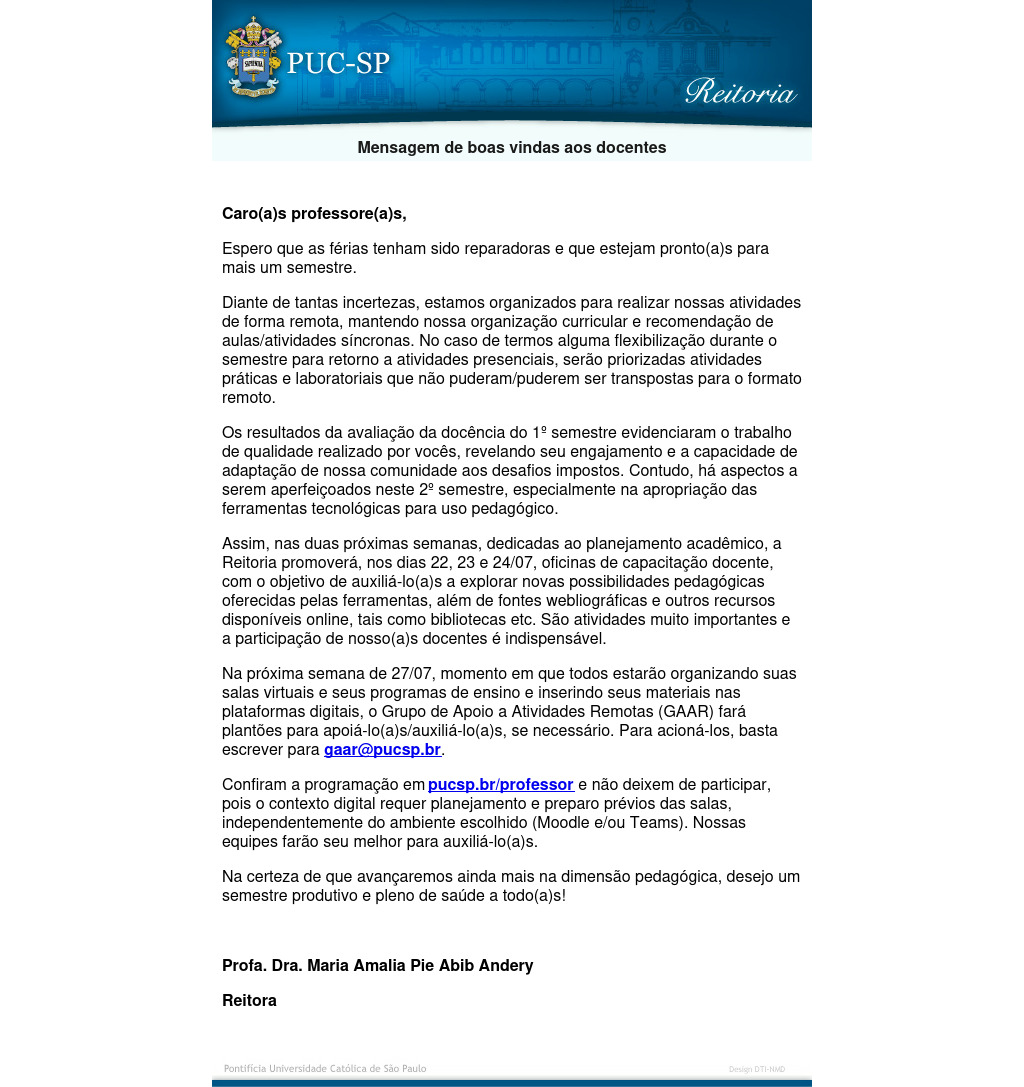A reitoria enviou carta de boas-vindas aos docentes da Universidade. Clique aqui para ler ou veja abaixo.
