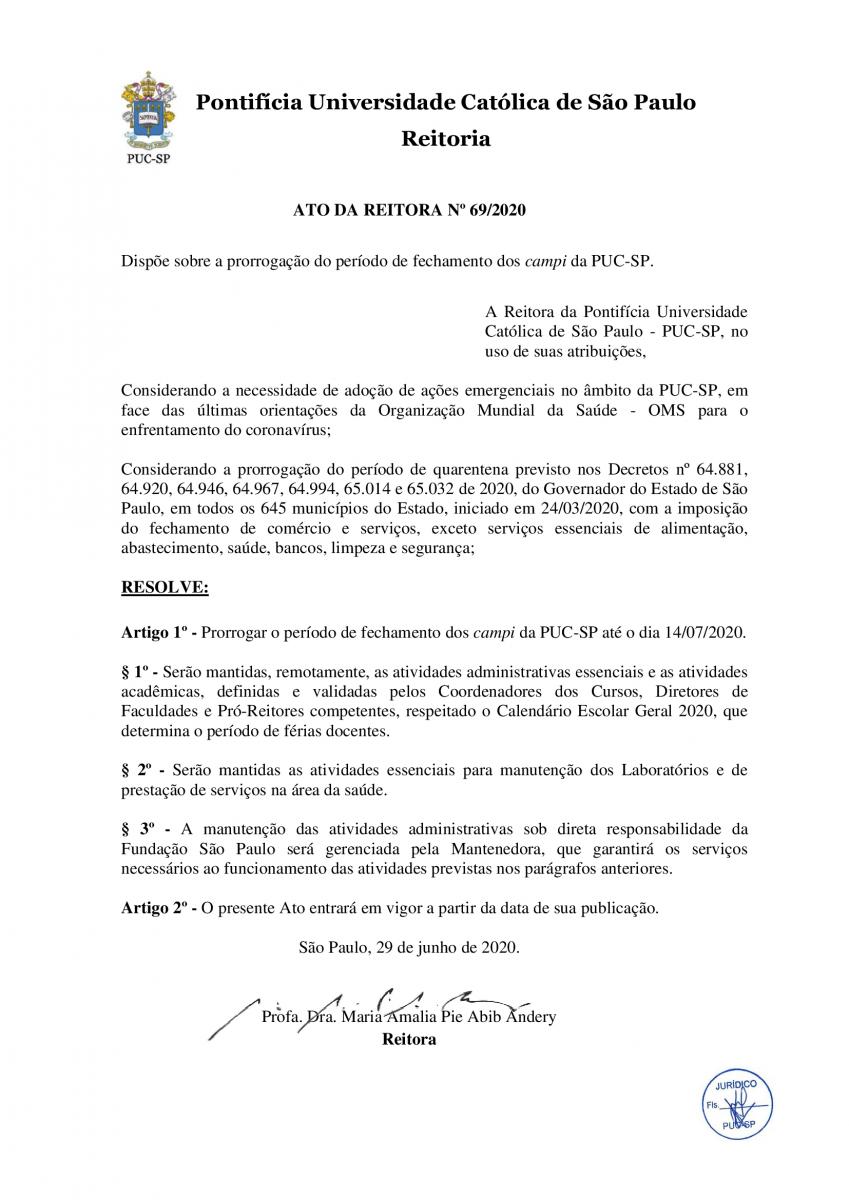 A PUC-SP estenderá a suspensão das atividades presenciais até 14/07/2020, em atendimento à definição das autoridades do estado e da cidade de São Paulo que estende a quarentena até a referida data.