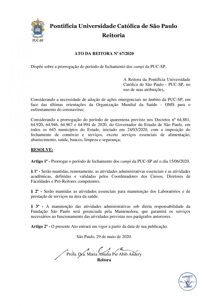 A PUC-SP prorrogará a suspensão das atividades presenciais até 15/06/2020, em atendimento à determinação do governo e das autoridades sanitárias do estado de São Paulo.
