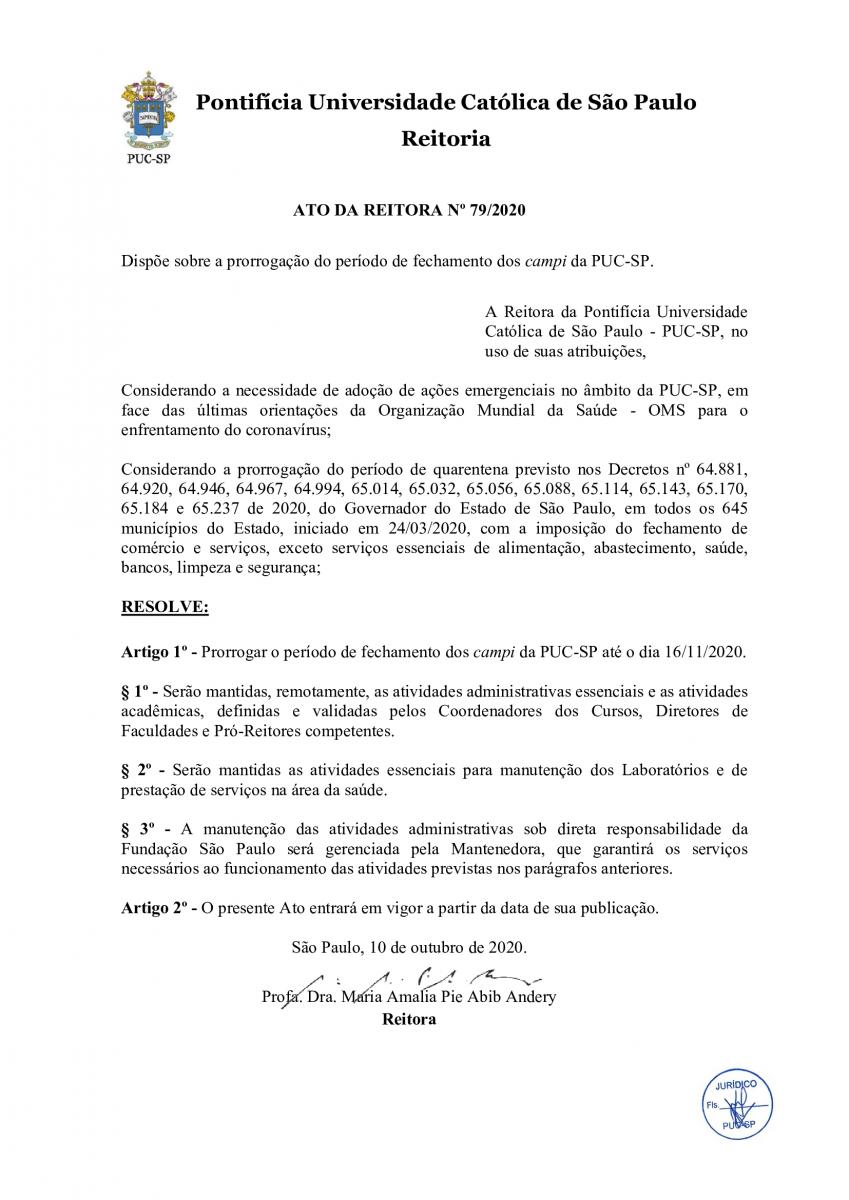 A PUC-SP estenderá a suspensão das atividades presenciais até 16/11/2020, em atendimento à definição das autoridades do estado e da cidade de São Paulo que prorroga a quarentena até a referida data.