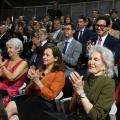 Além da reitora, a mesa foi composta pela vice-reitora, profa. Angela Brambilla Lessa, pelo diretor da Faculdade de Direito, o prof. Vidal Serrano, e pelo presidente do TJ-SP, Ricardo Mair Anafe. O palco do Tucarena também deu espaço aos demais membros do Consun, a todos(as) os(as) pró-reitores(as), além da Chefia de Gabinete e da Secretaria Geral da Reitoria, diretores de Faculdade e da representante da Fundação São Paulo, Irmã Valdete Contin. O cardeal Odilo Pedro Scherer, grão-chanceler da PUC-SP, não pôde comparecer ao evento, mas enviou suas felicitações.