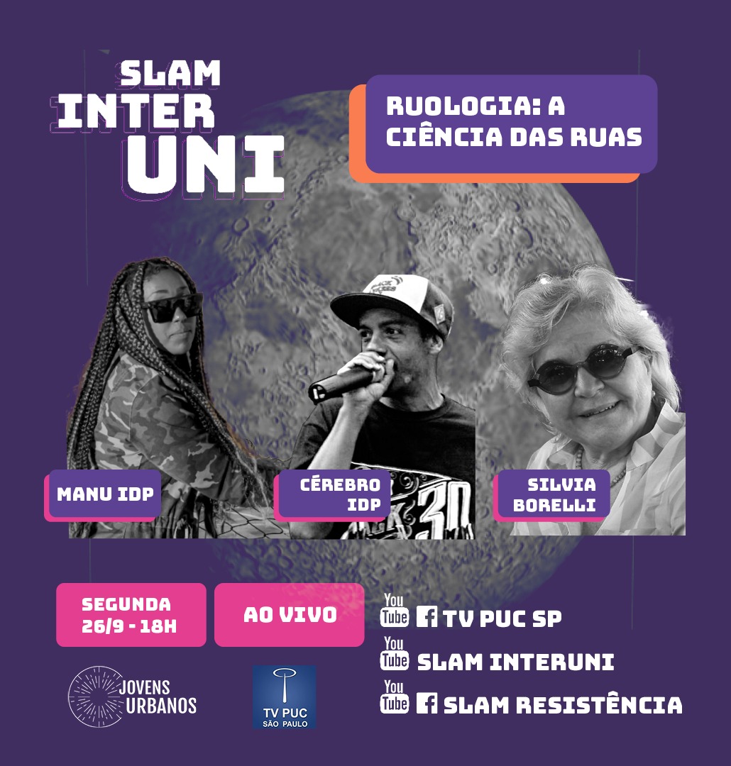 Dia 26/9, a partir das 18h, acontece a 15ª edição do Slam Interuni com o tema Ruologia: a Ciência das Ruas!.
